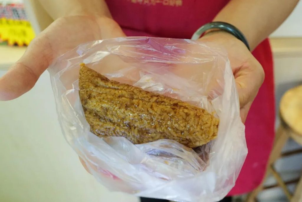 湖州人在做糯米制品上更是一絕,湖州粽子也是有名的,國芳在當地可是出名的老字號。店裏粽子很有特色,都是長條狀的,比市面上的個頭大很多,軟糯香甜,從頭到尾都可以吃到餡料。