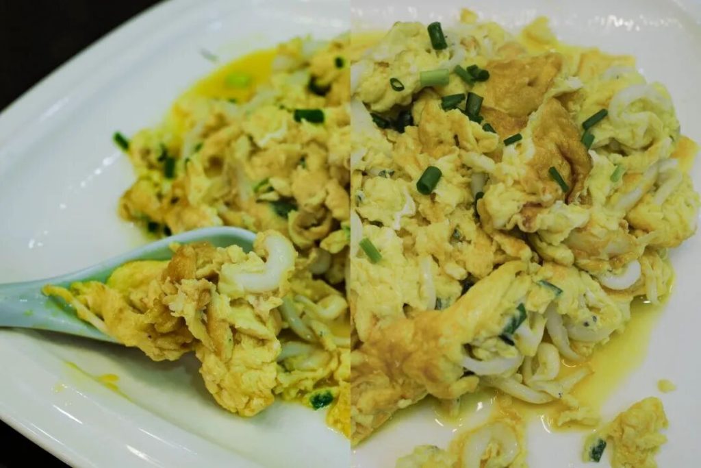 銀魚炒蛋,選取太湖邊的銀魚搭配土雞蛋翻炒成型,金黃的蛋塊裹著瑩白的小銀魚,口感嫩滑,鮮味融在大塊厚實的蛋裏暴擊味蕾。
