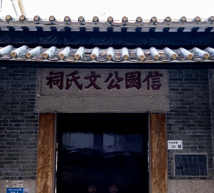 信國公文氏祠為三開間三進布局,磚木石結構,由門廳、中廳、後廳及廂廊組成,門廳匾額書“信國公文氏祠”,左側小字書“嘉慶 丁卯年桂月重修”。現為文氏族人祭拜及活動場所,對於了解本地區宗族祠堂建築平面布局和立面結構的演變具有一定的參考價值。1984年9月,被評為深圳市文物保護單位。