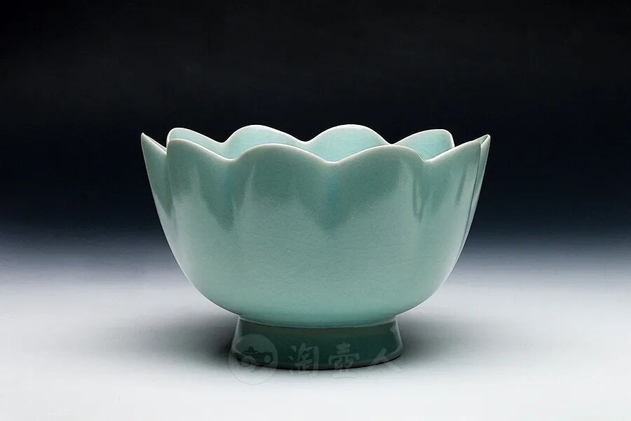 碗的造型如同綻放的蓮花,自上而下俯視,好似十個花瓣。汝窯瓷器燒造時間短,產量稀少,而這件蓮花式溫碗是同類型器物中唯一的傳世品。