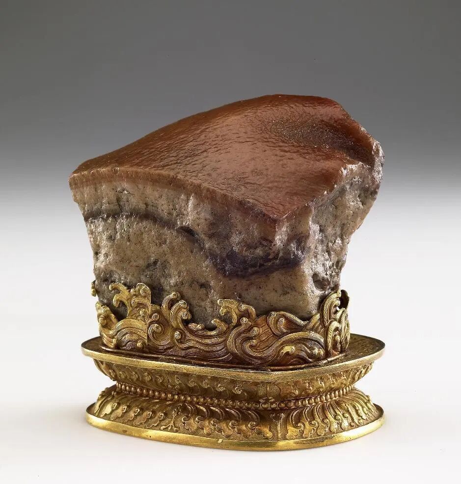碧石類礦物,其材質類似玉髓,產自內蒙古阿拉善左旗。這塊肉形石乍看之下,如同一塊剛出鍋的東坡肉,肥瘦層次分明,肌理清晰。肉皮部分呈現出焦黃色,皮下的肥肉部分潔白細膩,瘦肉部分質地鮮嫩、色澤紅潤,東坡肉石與翠玉白菜、毛公鼎並稱為 “台北故宮的鎮館三寶”。