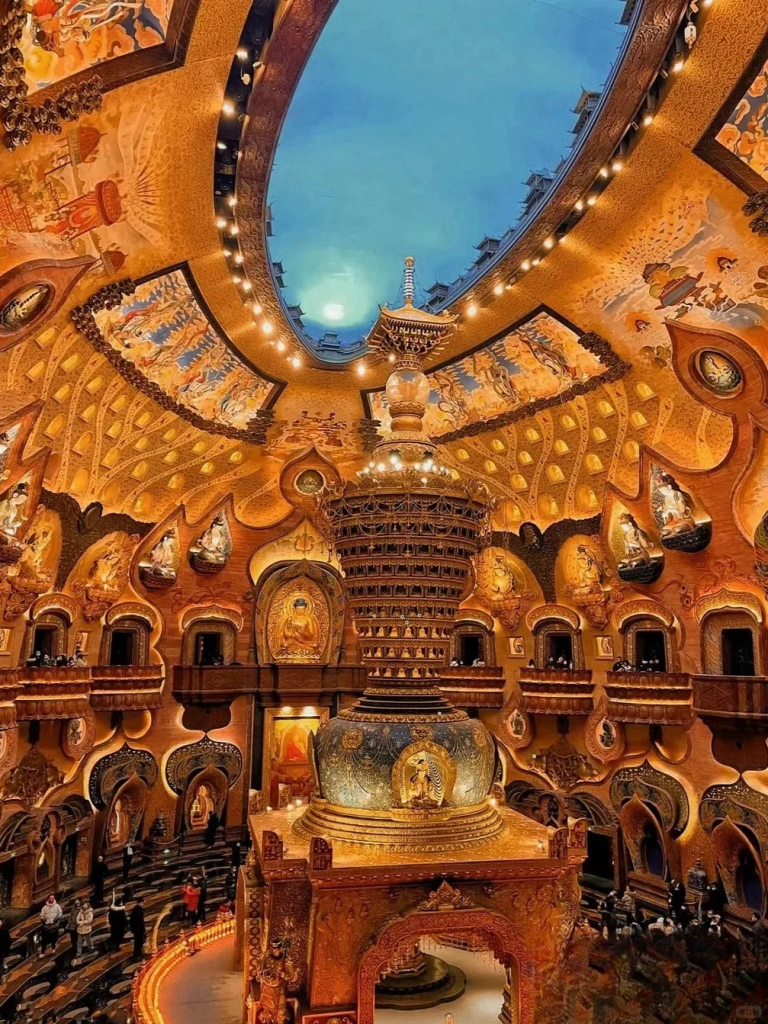 特色:世界級佛教建築奇跡,依礦坑而建,地上大穹頂象征佛陀智慧,地下六層宮殿恢弘深邃。