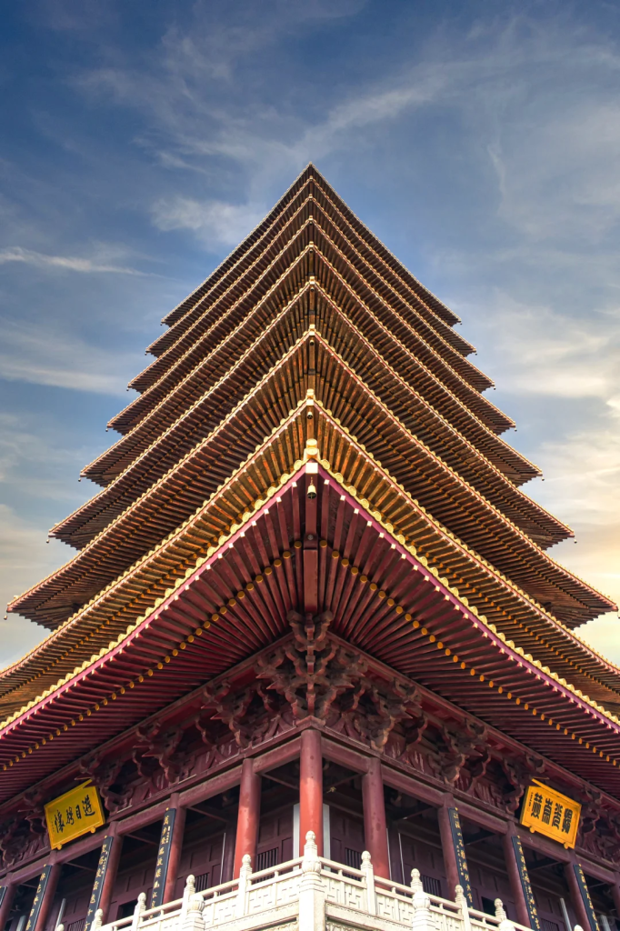 體驗:乘電梯或徒步登塔,塔內供奉毗盧遮那佛,壁畫雕刻精美,既是觀景台也是文化殿堂。