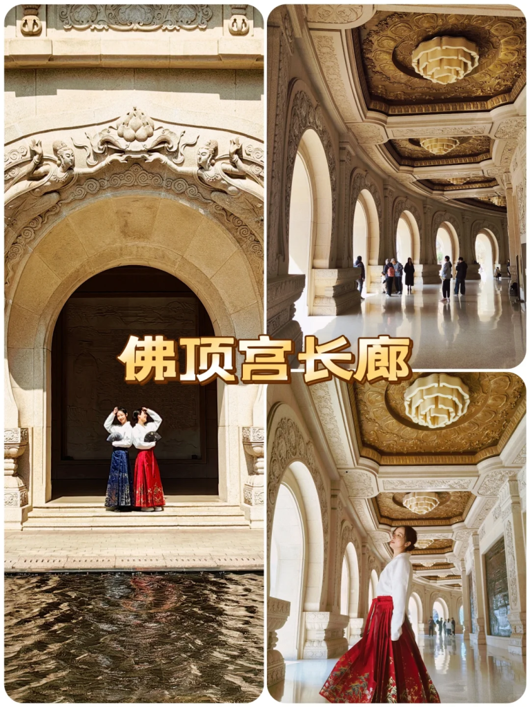 拍照點:露天水池倒影、長廊門洞框景佛頂塔、地宮穹頂、臥佛殿。