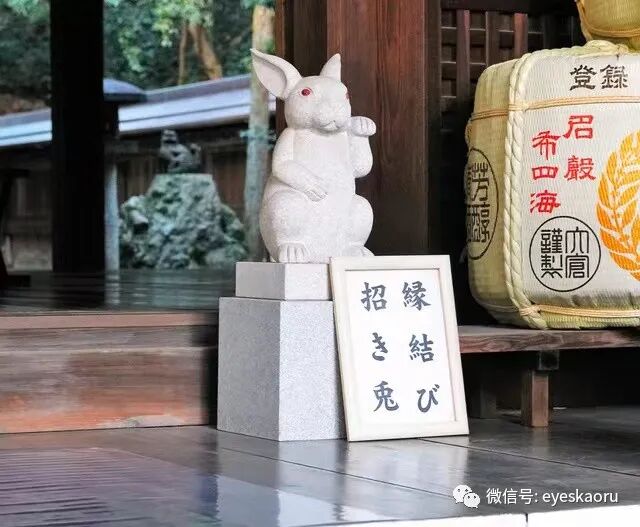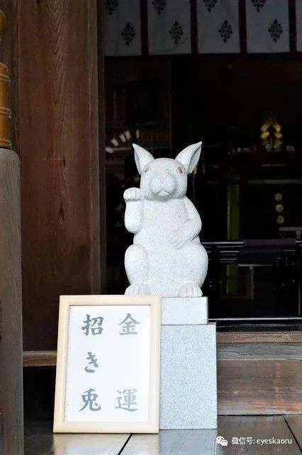 在正殿的左右,各有招來良緣和財運的兩尊“招財兔”。正面相對的右邊是“招緣兔”(「縁結び招き兎」)。