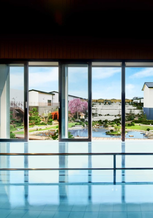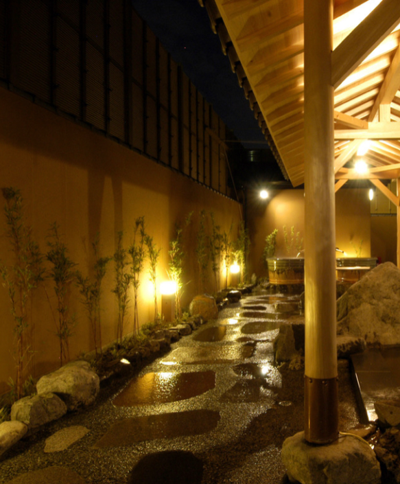 在前所未有的特別空間裏,包含著天然溫泉露天浴、足浴、岩石浴、放松、日本料理、屋頂日本庭園等,可以穿著和服風格的館內服裝沉浸在古代,和朋友、戀人,親人享受特殊時光~