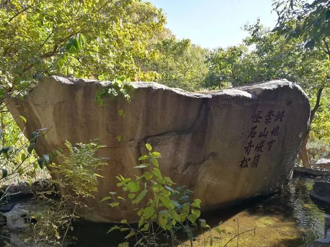 人們剛剛步入山門,到“入勝”景點,壁壁題刻便迎面而至。“入勝”為榮祿手書。榮祿,字仲華,清朝末年軍機大臣兼直隸總督。入勝,寓意已進入佛教淨地。它源於古詩“山色蔥蘢入勝境,空穀低回溪流聲。