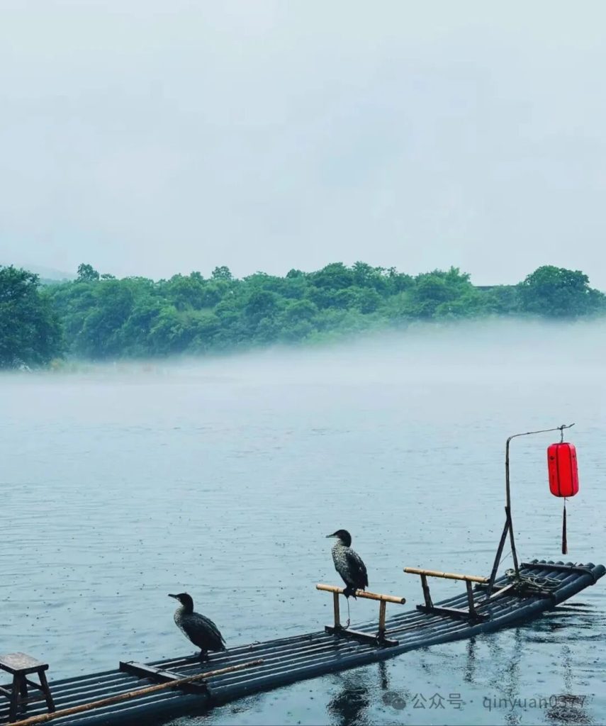 在桃花潭乘坐竹筏漂流是不可錯過的體驗。坐上竹筏,撐筏人緩緩將竹筏劃入潭中,清澈的潭水從腳下流過,能看到水底的沙石和遊動的小魚。兩岸青山連綿,粉牆黛瓦的徽派建築錯落有致,仿佛一幅徐徐展開的山水畫卷。在漂流過程中,還可以伸手觸摸清涼的潭水,感受大自然的溫柔。如果運氣好,還能看到潭邊棲息的水鳥,為這次漂流增添一份靈動之美。