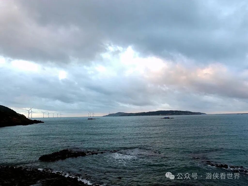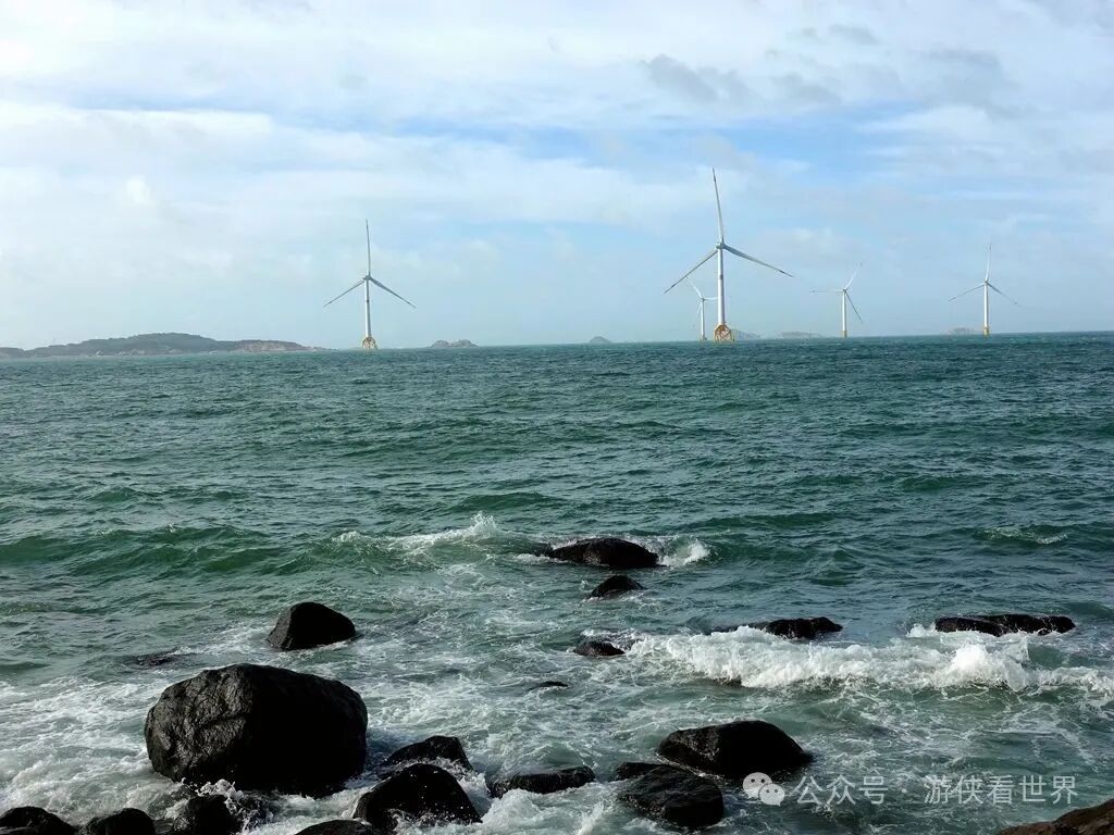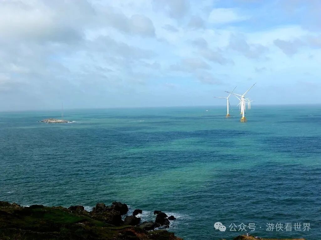 看落日晚霞都是在北線,主要是長江澳和北部生態廊道、和平村。長江澳沙灘西側礁石區退潮時形成鏡面沙灘,可拍攝風車與落日倒影,需提前查詢潮汐表。風車田沿岸,120座白色風車群與落日交融,形成橘子海效果。北部生態廊道有五處觀景台,網上推薦比較多的是2號和5號觀景台。車輛不允許在生態廊道停留,各個觀景台間距1-2公裏,可以付費乘坐觀光車或者步行。我是在2號觀景台看的落日,其實沒啥玻璃棧道,可以在棧道上或者岩石上看落日。有港灣和輪船,海裏有很多風車。5號觀景台據說可以俯瞰石頭厝和長江澳。和平村也是對著西方落日方向,而且海面上會有很多大型輪船,但我是白天去玩的,沒有實測落日晚霞的效果。龍鳳頭是公認的看日出最佳地點,可以看到太陽叢海平面升起。如果住在北港村,可以去村子北部海野咖啡廳旁邊的步道走下去海邊拍日出,只是海面上有島嶼遮擋。