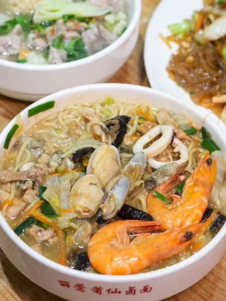 鹵面聽上去很簡單,但對莆田人來說,一碗就盛進了半個大海的鮮美,各色的章魚,鮑魚,幹貝,蝦仁,海蠣,紅菇……滿滿當當地鋪在面上,看著就讓人流口水。