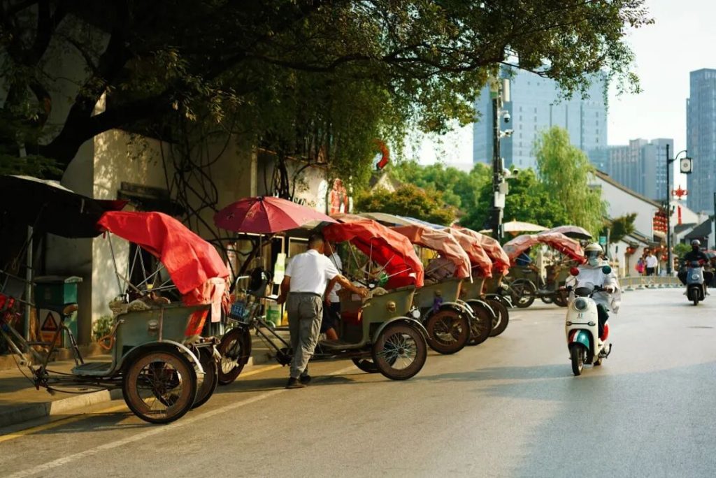 路邊的黃包車,讓我想起在短視頻里看到的——