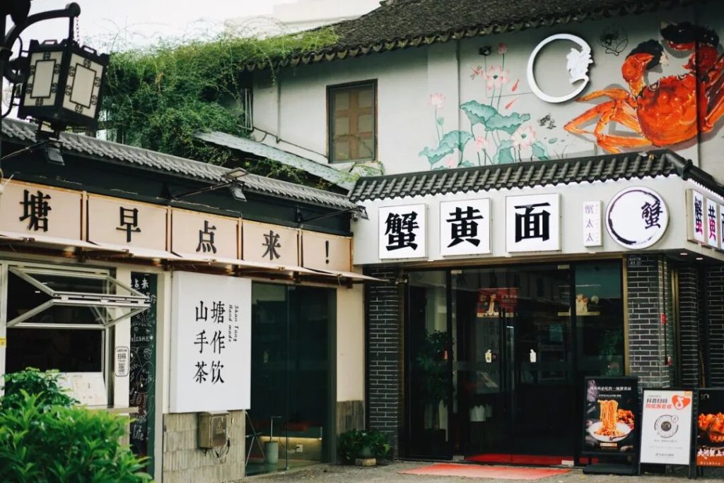 再往西側住宅區方向走去,人漸漸少了。這個路段街邊還會看到本地茶館,聽見居民在樹下聊天、看到小貓在牆角打盹。對某些人來說,這才是真正的山塘。