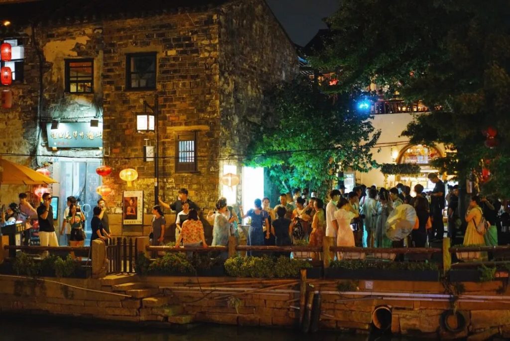 中段停留:小橋和河道是社交平台最熱的打卡點,旗袍漢服在這里最出片。橋邊的茶樓里,聽一曲評彈,能讓腳步慢下來。