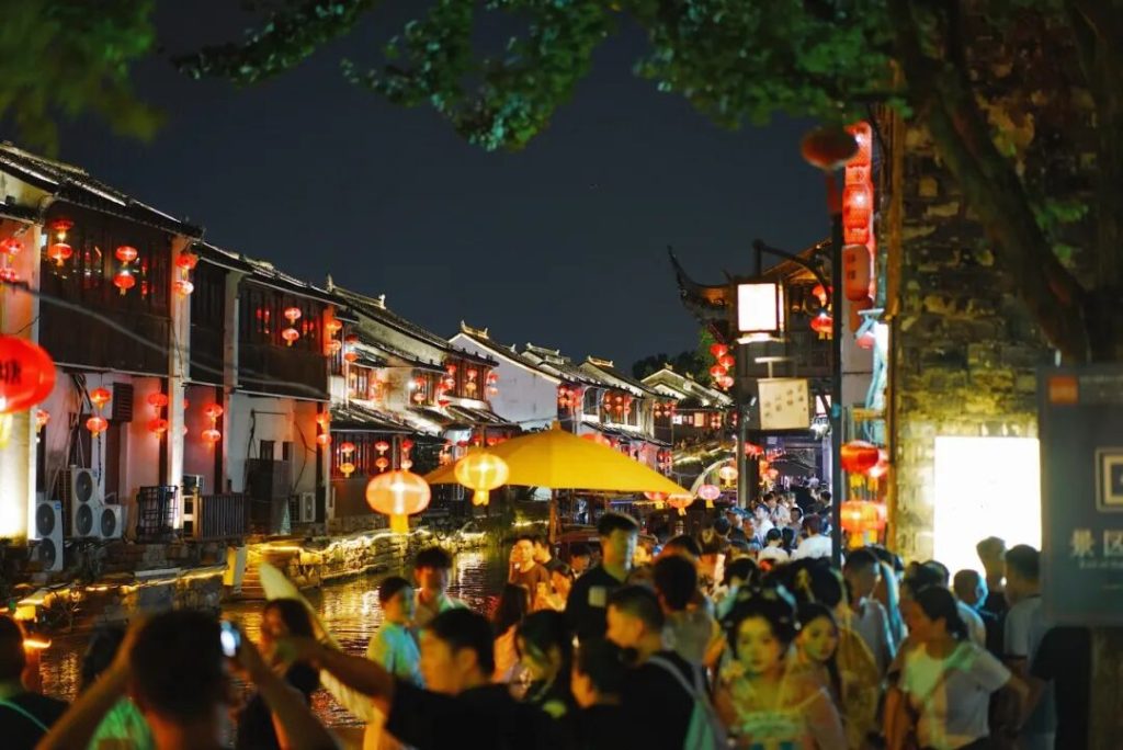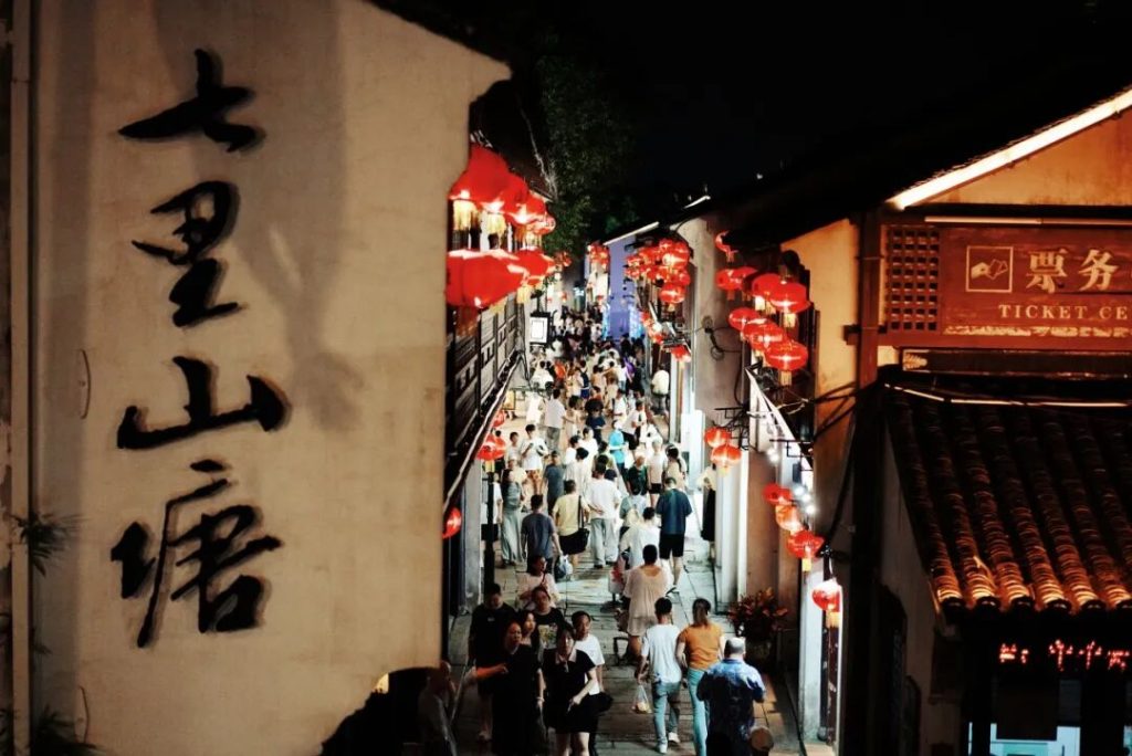 夜晚 19:00–21:00 燈籠齊亮,船只緩緩而過,評彈聲隨風傳來,是七里山塘最熱鬧、也最浪漫的時刻。