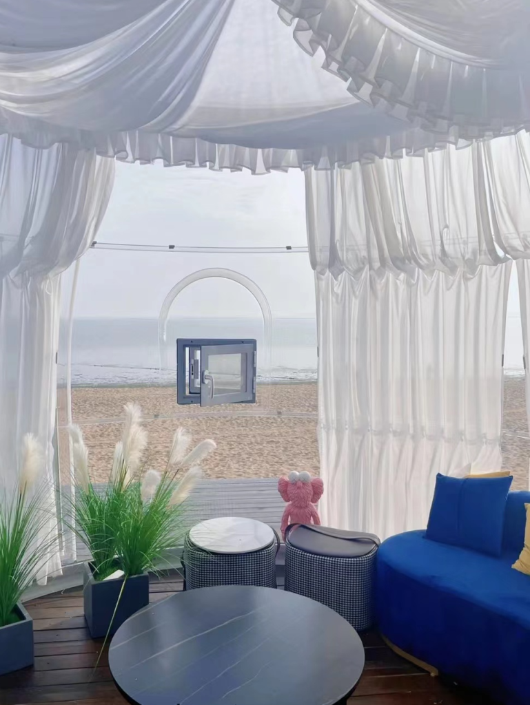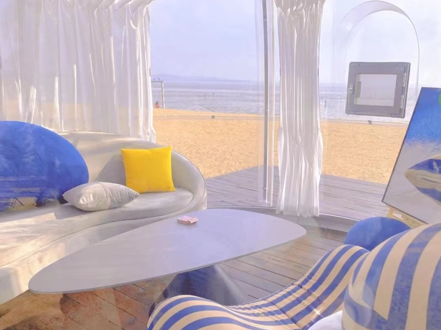 三間泡泡屋設計風格以ins風為主,搭配著半球形可愛形狀的泡泡屋,集童趣、溫馨於一身,360°觀海景浪漫又夢幻,它擊中你的少女心了嗎?