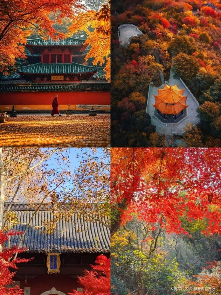 不誇張的說,南京的秋色很大一部分就是棲霞山給的,數千餘株楓樹層林漸染,濃鬱明亮的色彩鋪滿山野,隨著山路而行,古刹鍾聲響起,落滿異地的銀杏葉禪意十足,古樸愜意的氛圍撲面而來。