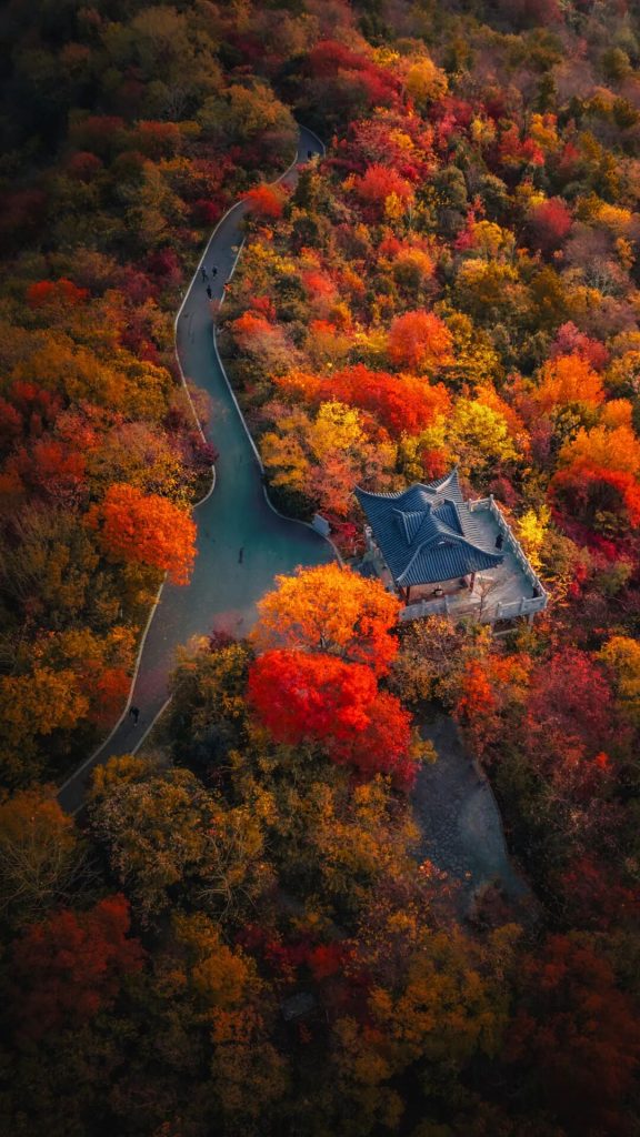 不誇張的說,南京的秋色很大一部分就是棲霞山給的,數千餘株楓樹層林漸染,濃鬱明亮的色彩鋪滿山野,隨著山路而行,古刹鍾聲響起,落滿異地的銀杏葉禪意十足,古樸愜意的氛圍撲面而來。