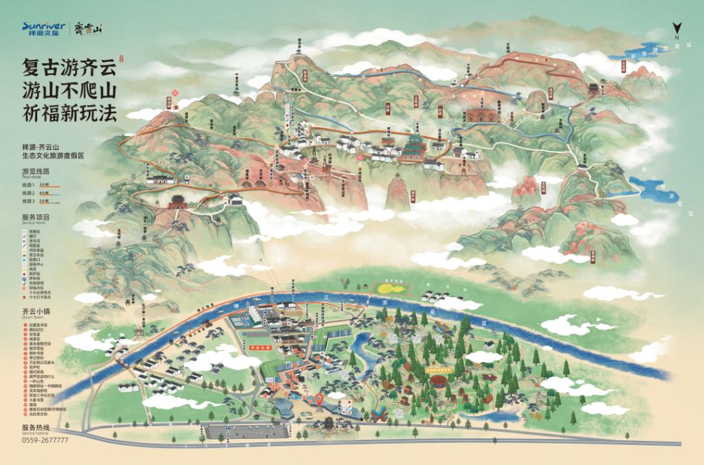 齊雲山最高峰海拔只有585米,可步行上山或乘坐索道。步行大概1小時,索道上下行110元。齊雲山山腳有橫江穿行而過,可花58元乘坐竹筏遊覽,索道+橫江竹筏的組合票則為138元。大家按需選擇,具體可在“黃山旅遊官方平台”公眾號上查詢購買。