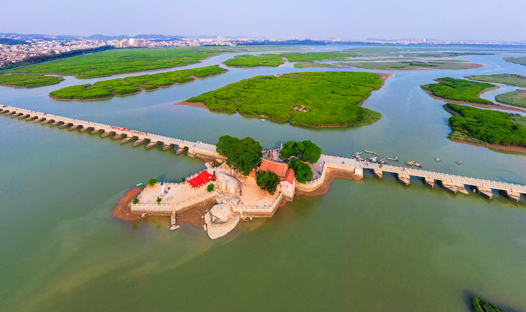 洛陽橋位於泉州洛陽江入海口處,為中國現存最早的梁式長石橋。泉州洛陽橋始建於北宋時期,橫跨“水闊五裏,深不可址”的洛陽江上。在修橋之前,這裏只能設海渡渡人。洛陽橋始建於1053年,由時任泉州郡守宋代大書法家蔡襄倡導興建,1059年竣工。洛陽橋建成後,橋上裝飾有許多精美的石獅子、石塔、石亭,橋兩端立有石將軍守護。