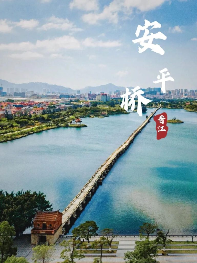 晉江安平橋始建於1138年,建成於1152年,由僧侶、商人、政府官員和當地民眾等合力建造。橋體為東西走向,橋長約2255米,橋面寬2.9-4米,條石鋪就,兩側護以花崗岩欄杆。共有石砌橋墩360座,有長方形、單尖船形、雙尖船形等式樣。橋墩之間橫架巨型石板作為橋面,石板長5-11米。