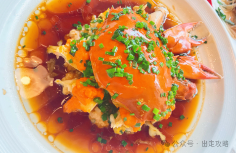 清蒸海蟹肉多,脂膏肥滿,味鮮美,營養豐富。每百克蟹內含蛋白質14克、脂肪2.6克。鮮食以蒸食為主,還可鹽漬加工“槍蟹”、蟹醬,蟹卵經漂洗曬幹即成為“蟹籽”,均是海味品中之上品。清蒸海蟹是最普通的海鮮菜品,一般的漁家都有提供,也可以到市區的海鮮酒樓品嘗。