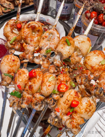 魷魚,也稱槍烏賊、柔魚,營養價值很高,是名貴的海產品。它和墨魚、章魚等軟體腕足類海產品在營養功用方面基本相同,都是富含蛋白質、鈣、磷、鐵等,並含有十分豐富的諸如硒、碘、錳、銅等微量元素的食物。日照的烤魷魚很多,可以在路邊找家小店嘗嘗,也可以去市內的海鮮酒樓吃。