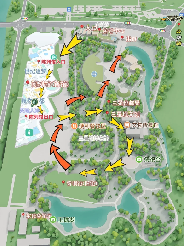 • 自駕:直接導航三星堆博物館停車場,一路跟著指示牌走就行,很方便。