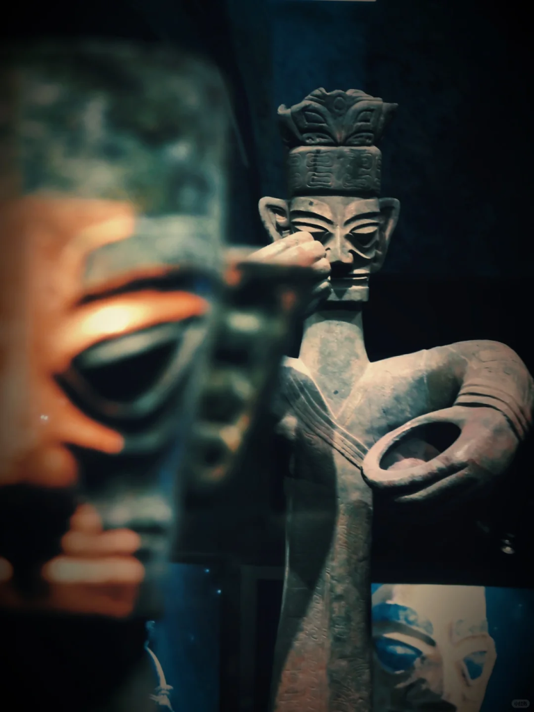 叨叨一句!不得不說,三星堆展廳貴是有一定道理的,暗光設計特別有儀式感,怎么拍都出片,而且玻璃不反光。