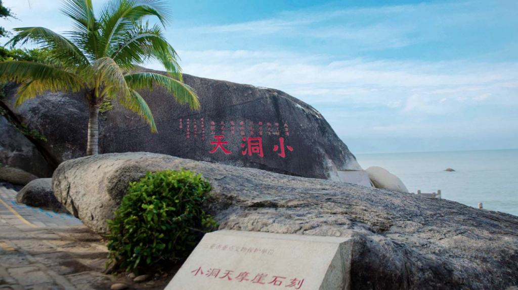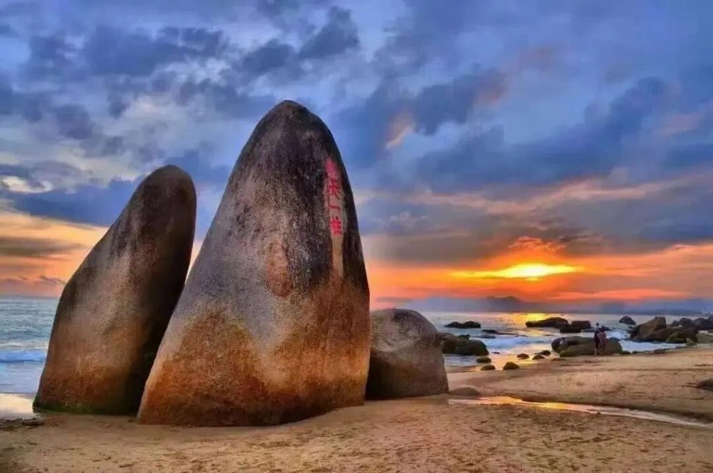 來源於清代崖州知州程哲題刻“天涯”二字,後人在此基礎上增刻“海角”,成為唐宋貶官貶謫南荒筆下的絕境,如今則象征著浪漫愛情,曾經的流放孤島成為愛情聖地。