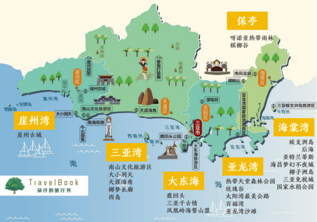 三亞是個很有趣的地方,這裏是我國唯一的熱帶海濱,既有我國最大的珊瑚礁群,還有三亞河口紅樹林和天涯海角火山岩地貌海岸;既有千年原住民-黎族的原始崇拜與節慶,還有中國最南端的古代州郡治所,貶官文化與海上絲綢之路在此交織;免稅城與呀諾達雨林“荒野學校”共存,可以上午搶購奢侈品,下午學習鑽木取火,種種撕裂感構成三亞的魔幻現實。