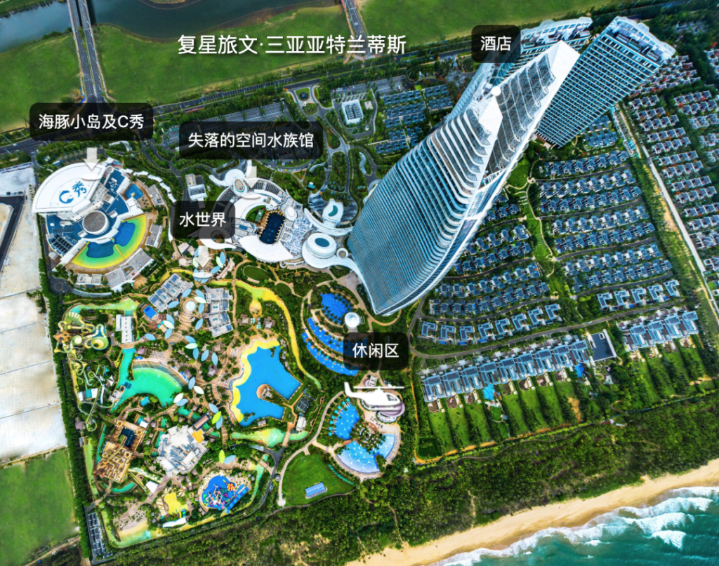 亞特蘭蒂斯,坐落在三亞海棠灣,是以消失的亞特蘭蒂斯大陸之謎為藍本打造的海洋文化度假勝地,占地54萬平米,坐擁1314間全海景房及水底套房,20萬平米的亞特蘭蒂斯水世界與海豚小島,海水總量達17500噸的失落的空間水族館,又有可同時容納1800位觀眾欣賞表演的C秀劇場,以及設施專業的海洋哺乳動物醫院和海獅樂園。