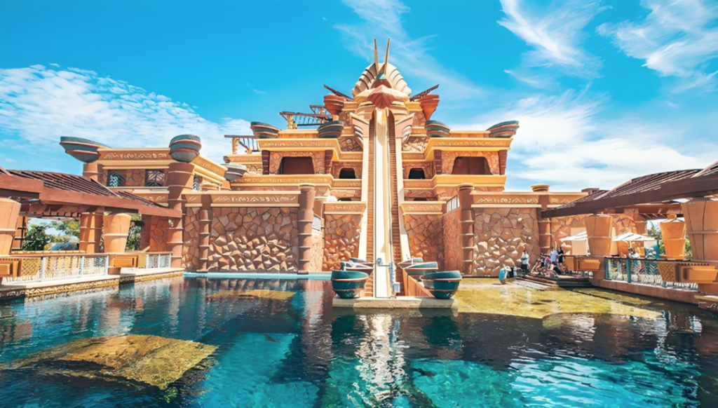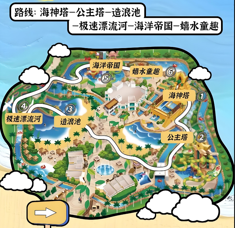 “海神之躍”滑道:高28米(約9層樓),近乎垂直俯沖,時速達73公裏,滑道底部直穿鯊魚池透明隧道,刺激感與視覺沖擊力全球獨有。