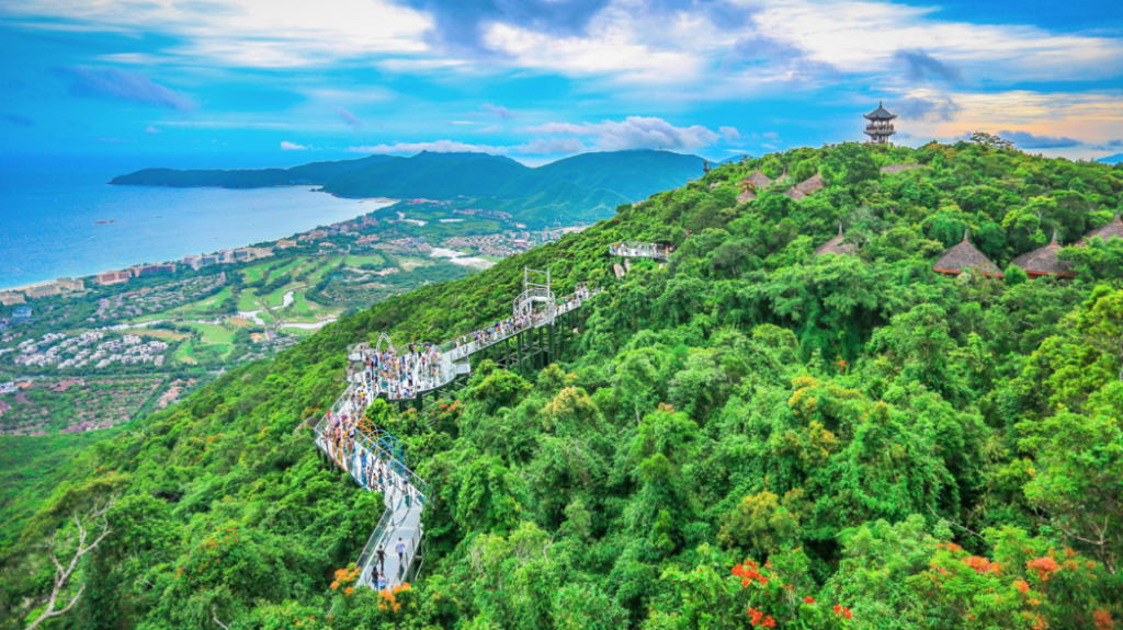 360°俯瞰三亞灣、鳳凰島與大東海,日落時段最熱門。