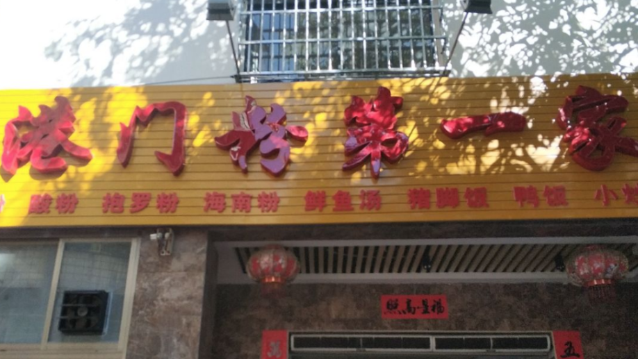 祖傳三代經營,最初是碼頭工人的早餐鋪,現為三亞港門粉的代名詞。特色菜是湯底用豬骨和海魚熬制的港門粉,現炸鮮蝦面糊做的炸蝦餅也很美味。