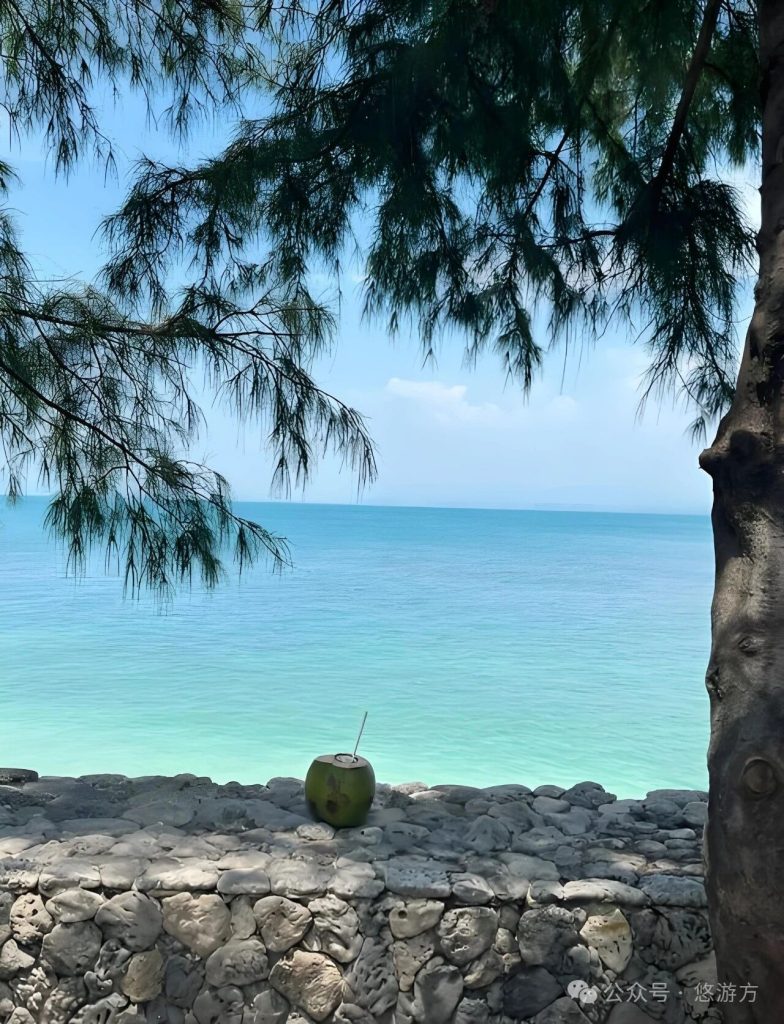 西島一種獨特的建築形式,主要由珊瑚石砌成。這些珊瑚石是從海底打撈上來的珊瑚礁石,經過處理後用於建造房屋和圍牆。在這裏,能拍到果凍海,坐在珊瑚牆上,拍海面、拍牆或者拍松樹都很出片;建議可以買一個椰子當拍攝道具。