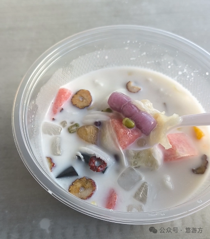 漁村吃清補涼,裏面有紅豆、綠豆、薏米、椰奶等,喝起來清涼解暑。