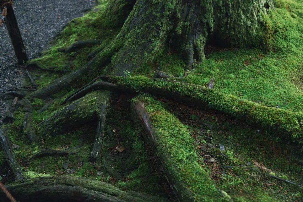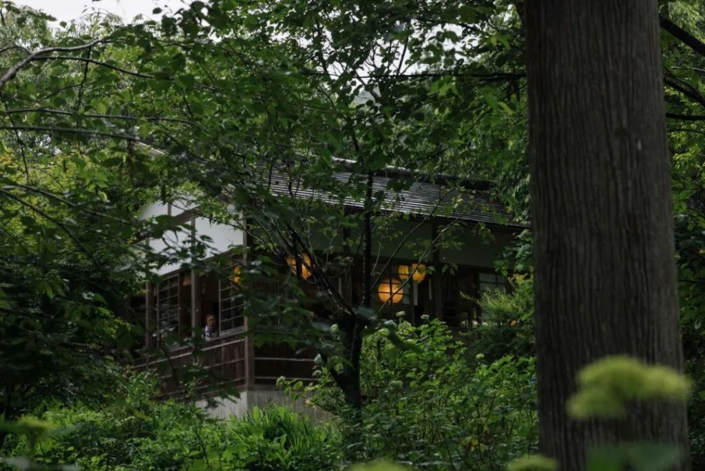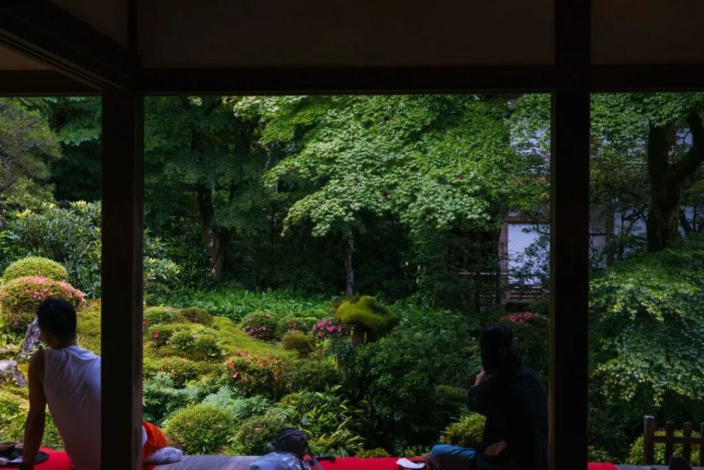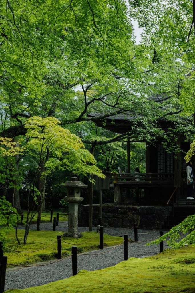 “有清園”名字來源於西晉詩人左思的詩句“山水有清音”。邁步進入有清園,滿眼都是綠意,柏樹、雪松、柏樹,還有像滿天鵝絨般的青苔蘚鋪滿庭院,尤其是在六月的京都淅淅瀝瀝的雨水中,眼前的綠意更顯安寧和寂靜。