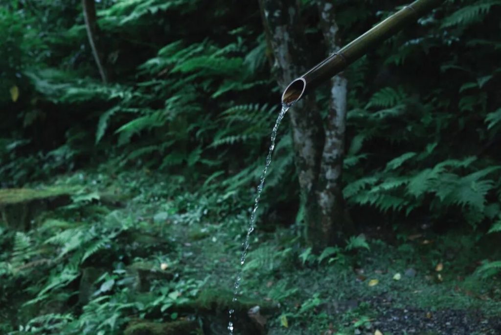 眼前斷了線的水珠從屋簷上滴下,看它打濕在庭院裏綠意盎然的草木與鮮花上。被雨聲白噪音包裹的世界,瞬間就安靜了下來。