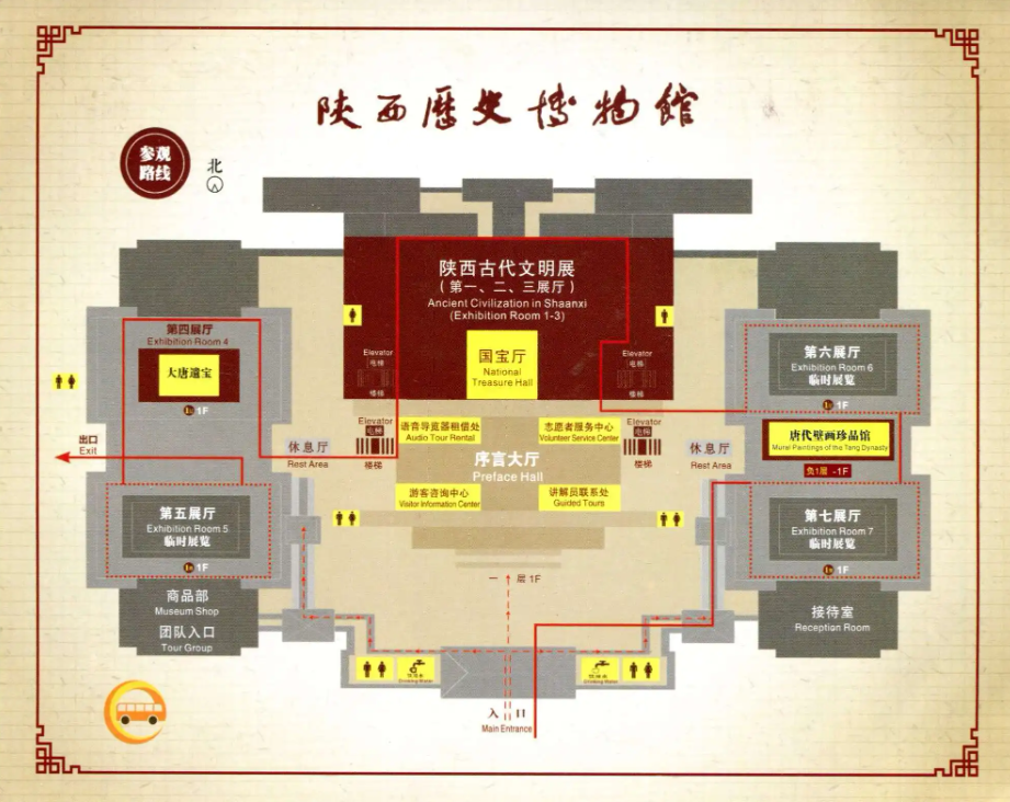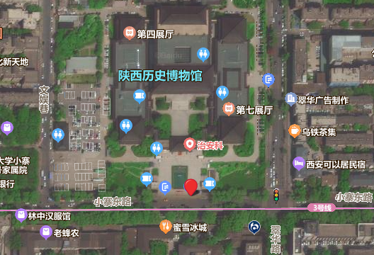 公交:乘坐26、5、30、24、27、401、271、521、遊8、19、34、400、701、527路等公交車在陝西歷史博物館或翠華路站下車即到