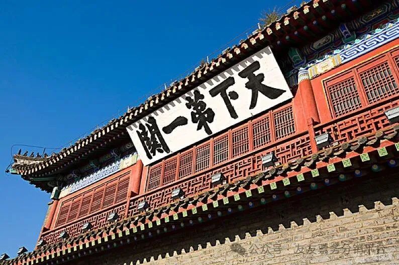 天下第一關處處都是寶。雄偉的天下第一關城樓是中國城防建築的奇跡,城樓之上最引人注目的“天下第一關”巨匾,更是書法界的瑰寶。匾額長5.9米,寬1.55米,其中“一”字一筆就有1.09米的長度,繁寫的“關”字一豎就長達1.45米,五個大字結構安排合理,布局章法得當,筆體蒼勁有力,與建築渾然一體。