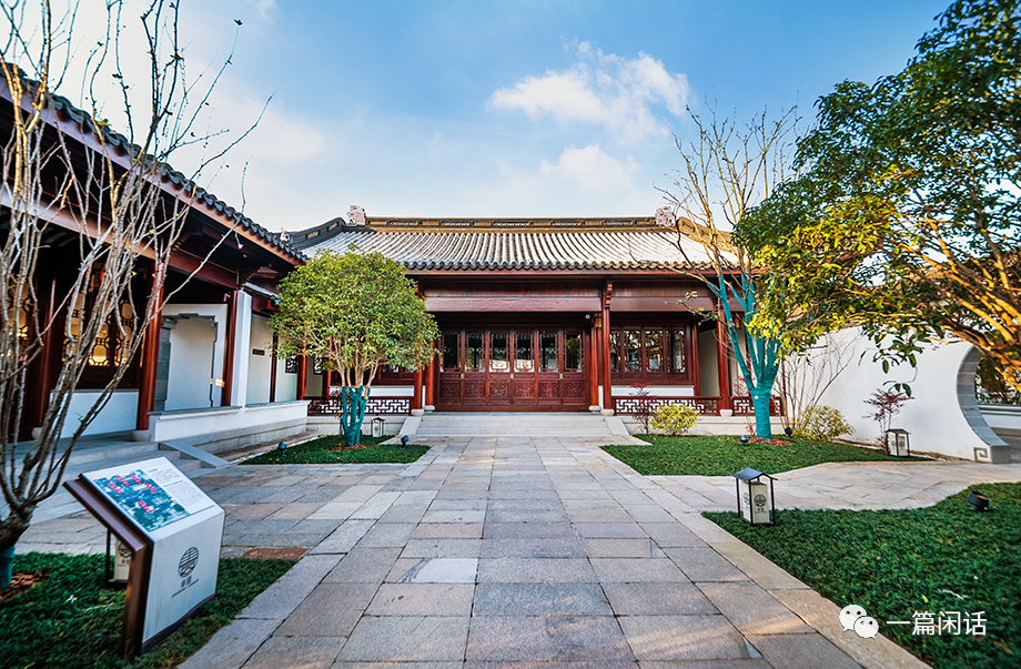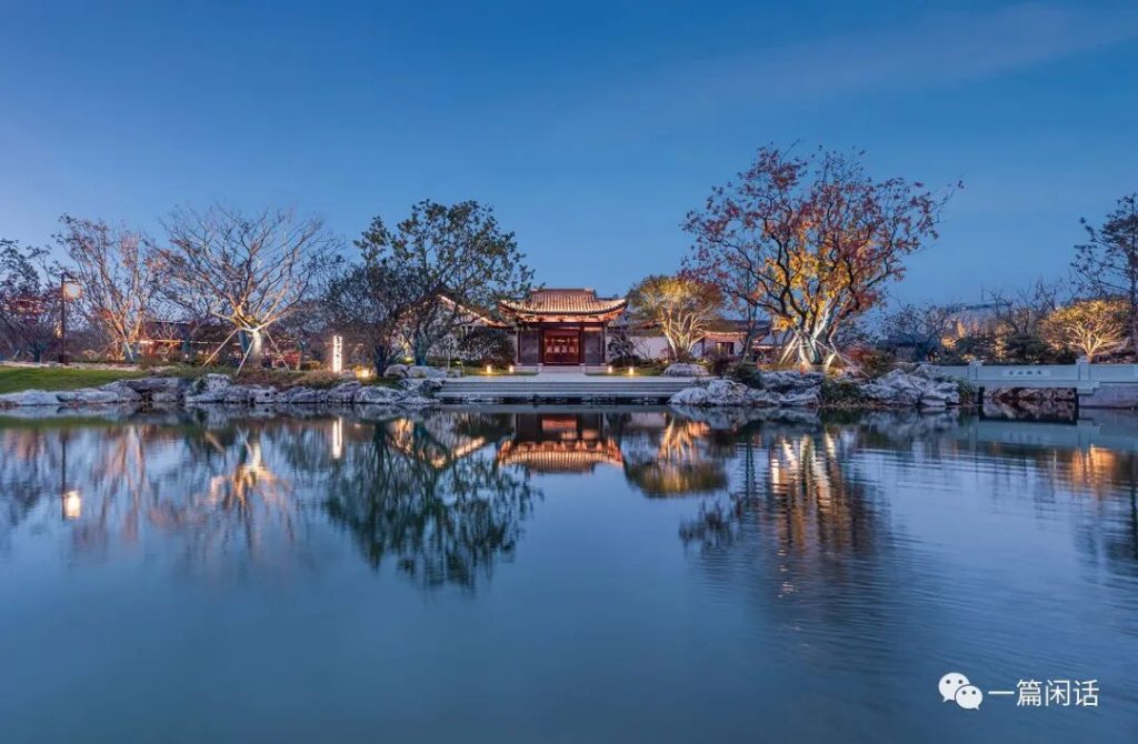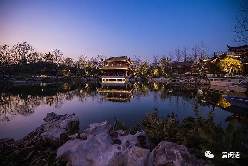 古柯晚渡位於玉蘭館門口臨近的水岸邊,景象以古柯、石磯和湖面景觀為主。通過參天古木強化宅院的曆史感,石磯碼頭暗含了傳統江南水鄉臨水而居的生活模式。於此同時周圍水面較開闊,傍晚時分雲霞倒映水面,又多了一重晚渡的心理景觀。
