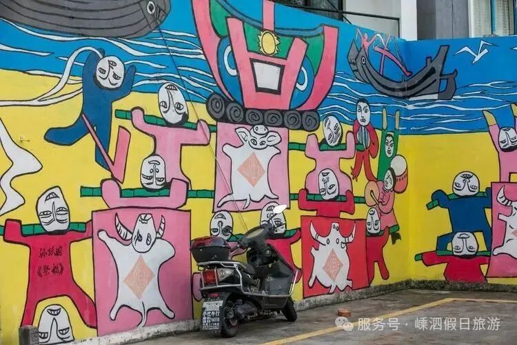 原來是一些不知名的小村子,後來將漁民畫搬上了漁家牆頭,一幅幅看似誇張、隨意卻蘊含了生活熱情的漁民畫形成了一道獨特的風景。現在全村一半以上的房子外牆繪有漁民畫。小漁村宛若一座漁民畫壁畫露天美術館。