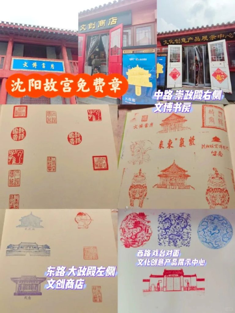 可以自帶本子,也可以在崇政殿旁,東所門口攤位可先購買手繪地圖15一張,可集9個章門口文創店—2枚文博書—7枚大政殿左側文創店—5枚文化創意產品展示中心—3枚