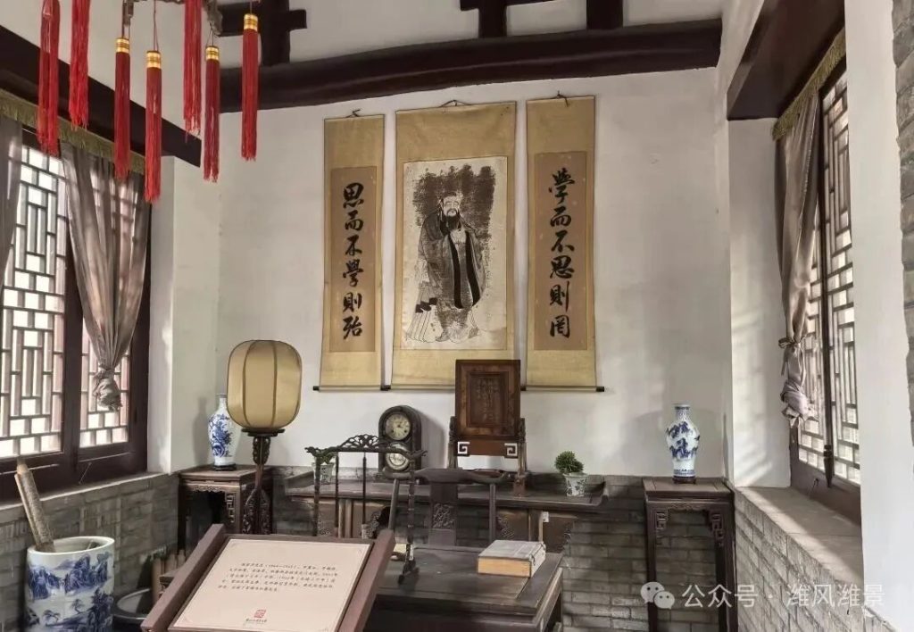 西軸線:這裏有靜如山房、秋聲館和深柳讀書堂,是主人的會客廳、書房和客房,院內有翠竹、牡丹月季、奇石和廊架,處處清幽。靜如山房是丁氏接待貴賓下榻之處,現匾額“靜如山房”四字乃康有為1925年來濰,下榻“十笏園”時所題。深柳讀書堂在西軸線的最北面,取自劉昚虛的《闕題》“閑門向山路,深柳讀書堂”。