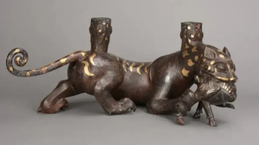 錯金銀虎噬鹿屏風座