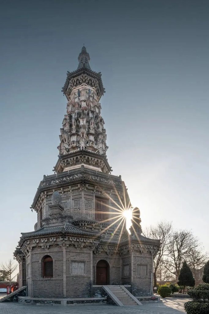 其他三塔,也都有各自的風格和來曆:臨濟寺澄靈塔秀麗典雅,是禪宗“五家七宗”之一臨濟宗的祖塔;天寧寺淩霄塔宏偉大氣,似乎在述說這座寺廟在曆史上的重要地位;線條直樸的須彌塔,雖是明清重修,卻仍然保持著唐代的形制。