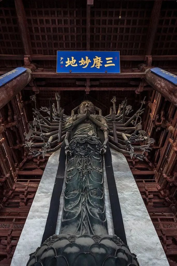 矗立於隆興寺大悲閣中的“正定菩薩”,是河北四寶“滄州獅子定州塔,正定菩薩趙州橋”中如假包換的一寶。21.3米的高度,讓這尊千手千眼觀音透著不可言說的肅穆莊嚴,它是中國現存最高大的古代銅鑄立佛,據說修築之時用掉了北宋當年十分之一的銅產量。