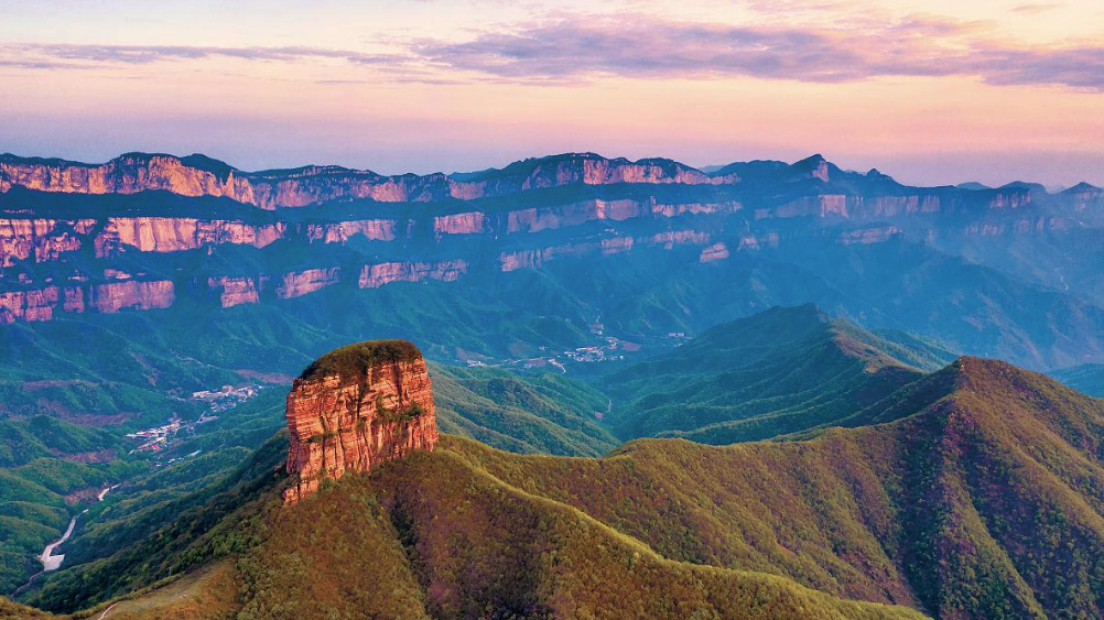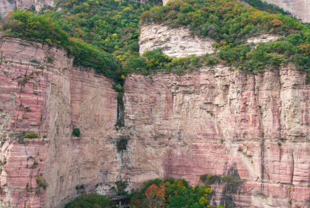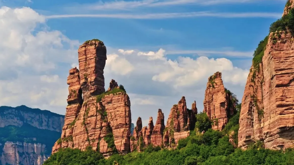 途經嶂石岩地貌命名地,可以看到丹壁如牆的大斷崖巍然聳立,這就是“嶂石岩地貌”最突出的一部分。