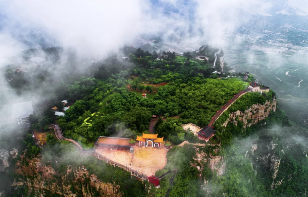 抱犢寨海拔580米,四周懸崖絕壁,頂部平曠坦夷,占地660畝。這裏曾是漢淮陰侯韓信“背水一戰”的古戰場,亦是著名道人張三豐成道涉足之福地。風光奇異獨特,被譽為“天堂之幻覺,人間之福地,兵家之戰場,世外之桃花源”。