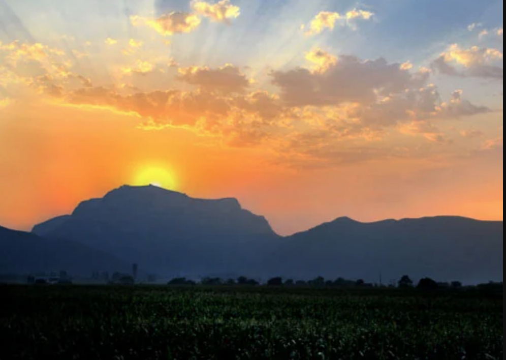 抱犢山的主峰,像是巨佛碩大的頭顱,頭南足北,眉目清晰逼真,落日餘暉時,臥佛的周身像鑲上一層金邊。